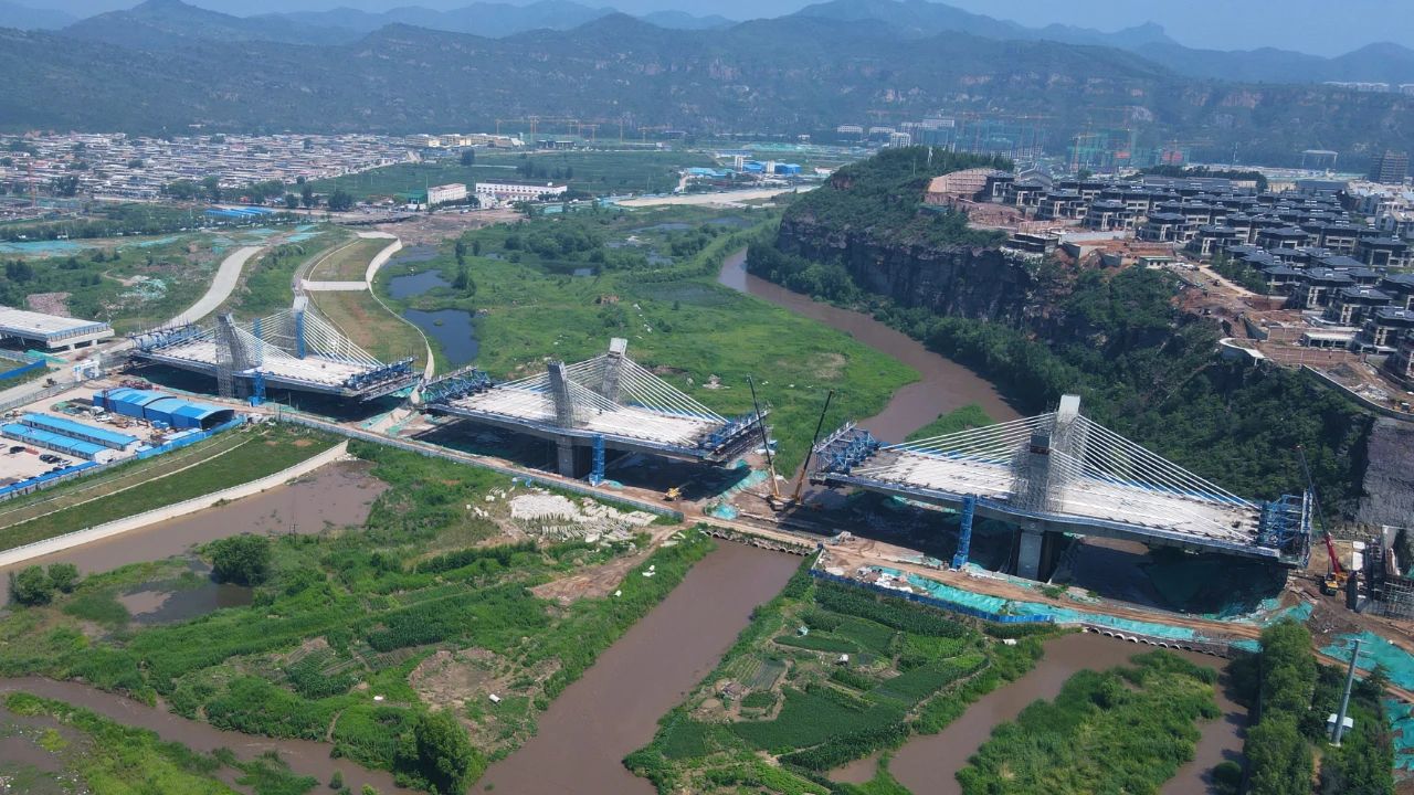 承德閆營子大橋東西向橫跨灤河,西接丹霞路,東接大劉線,位于進出承德的門戶位置。項目工程包括主橋、引橋及兩側(cè)引道三部分總長933m。其中主橋為三塔四跨雙索面預(yù)應(yīng)力混凝土矮塔斜拉橋,跨徑長度460m,全寬37.5m。