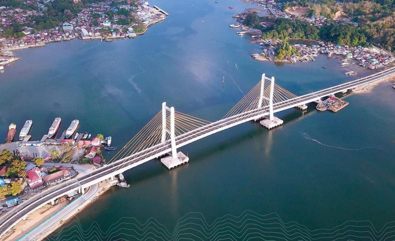 肯達(dá)里斜拉橋位于印尼蘇拉威西省,橋梁全長474.08m,主跨388m,雙塔高約78.35m,預(yù)應(yīng)力混凝土橋面寬25m,采用雙向雙車道公路和兩條人行道。