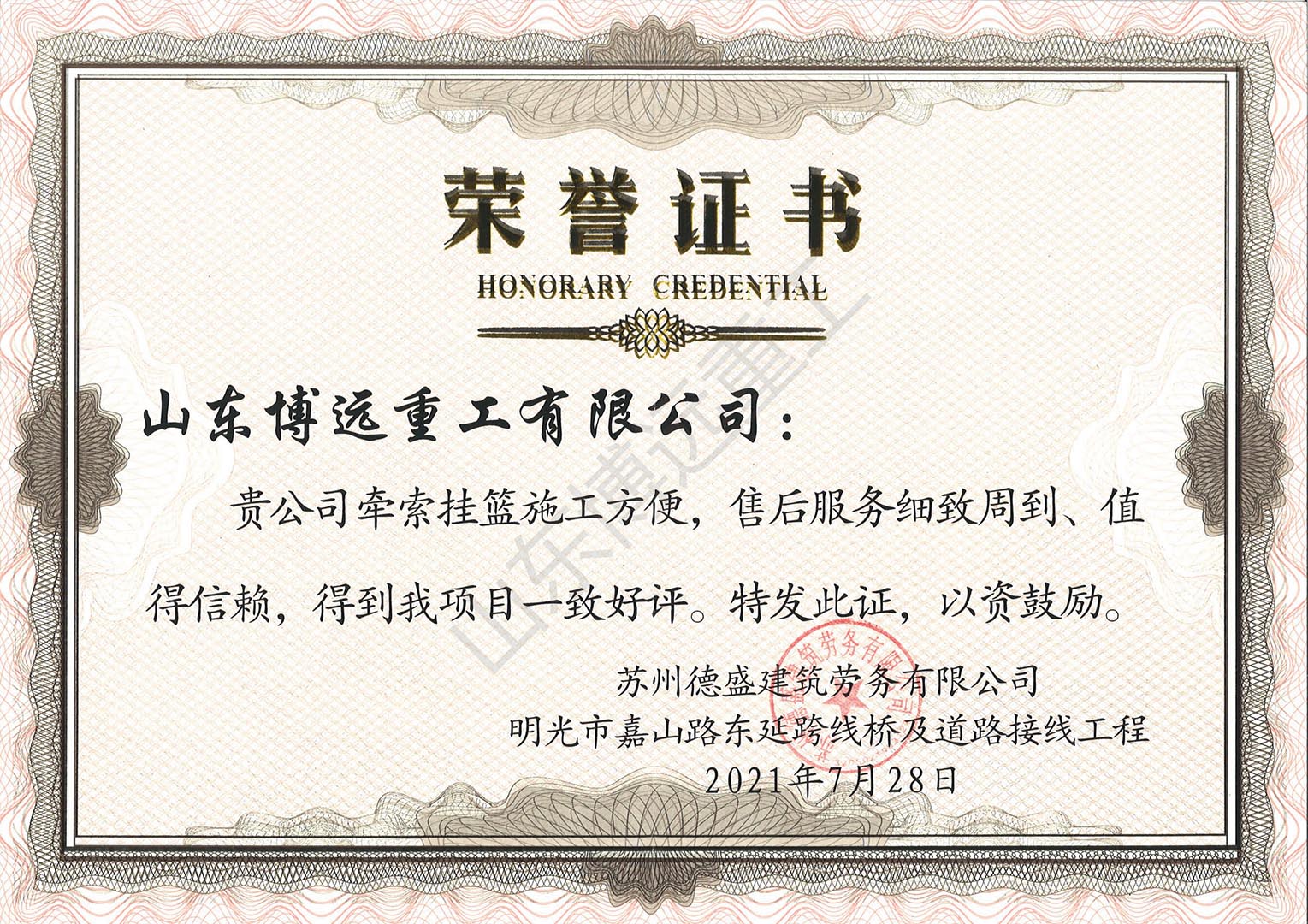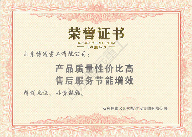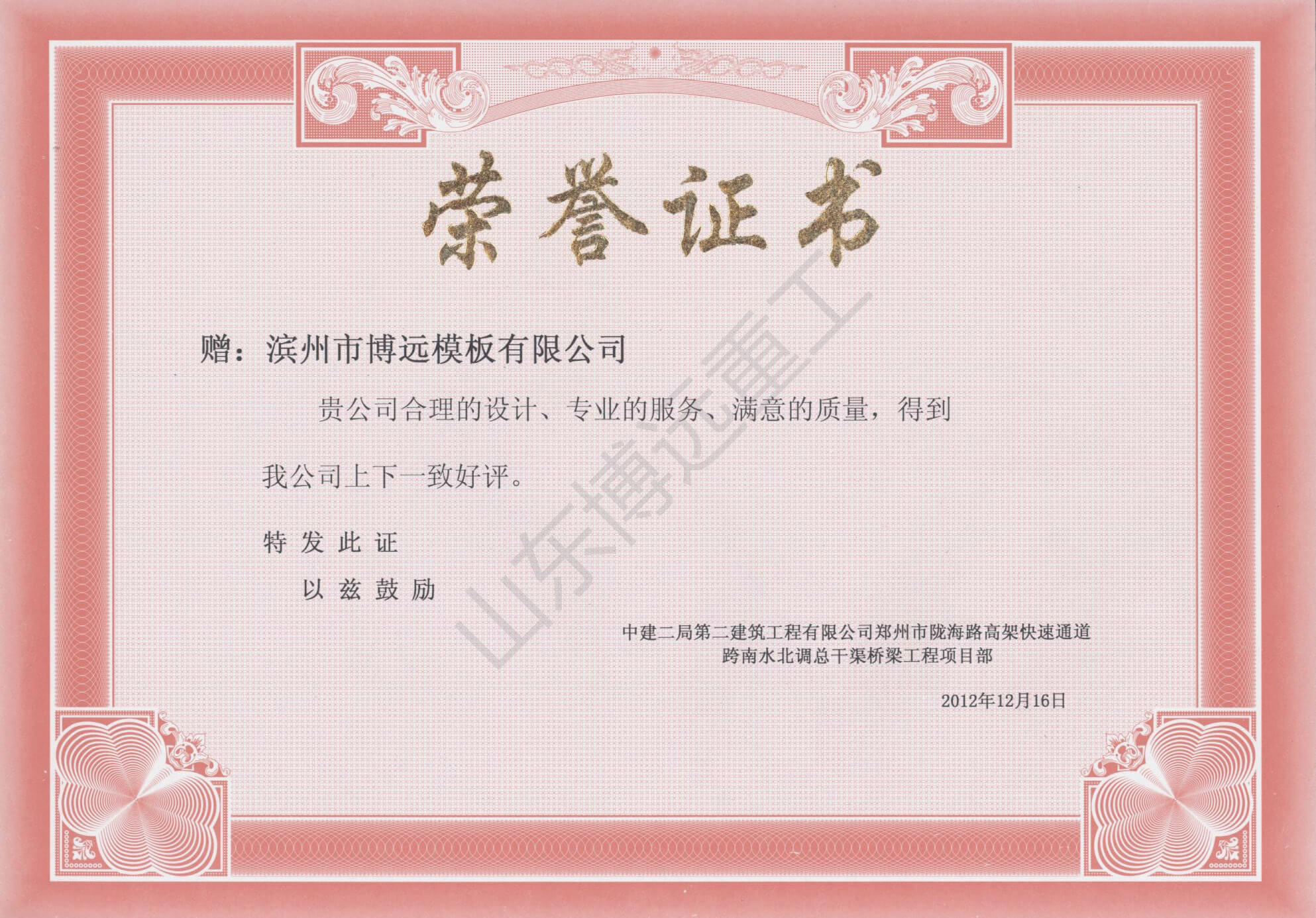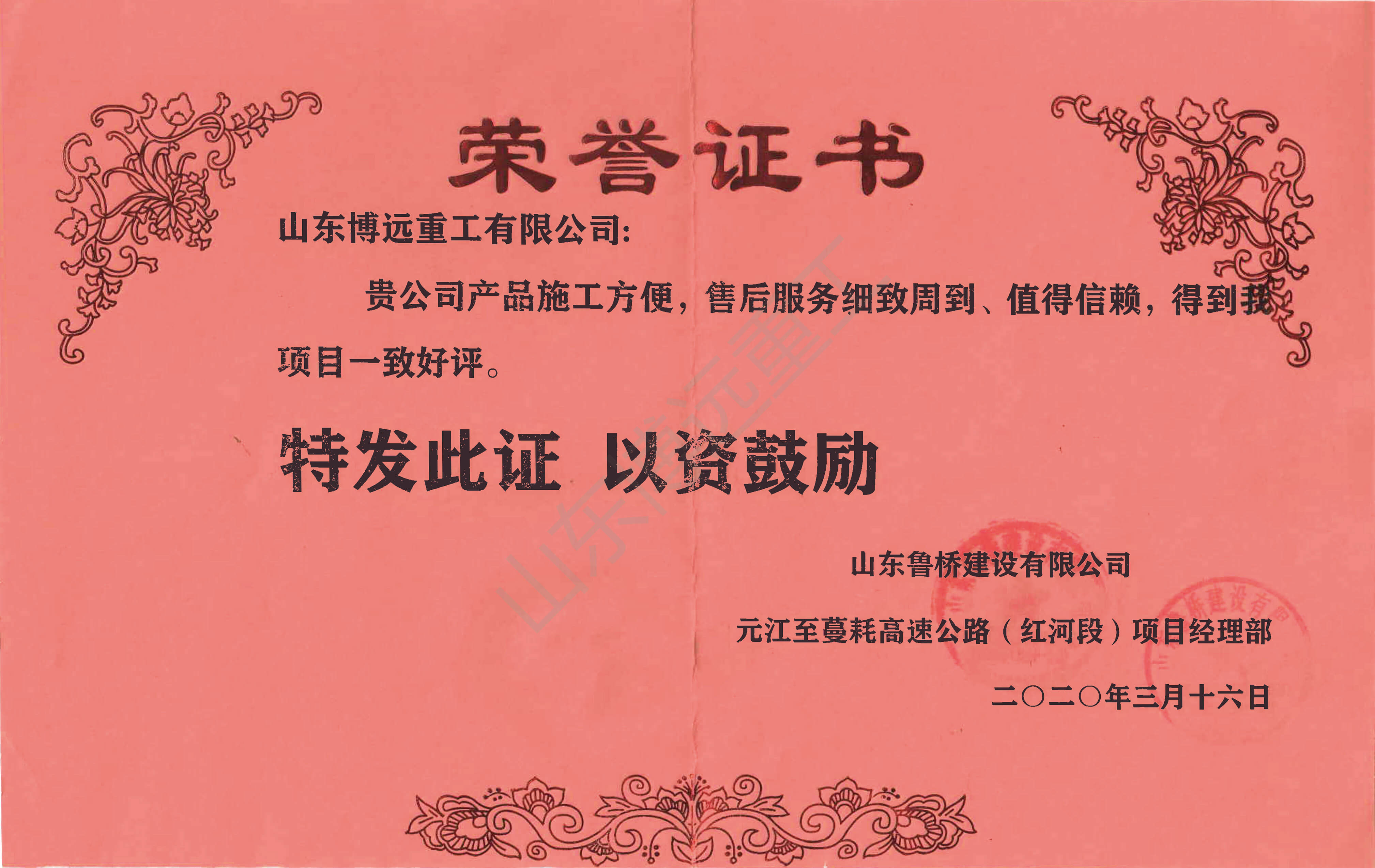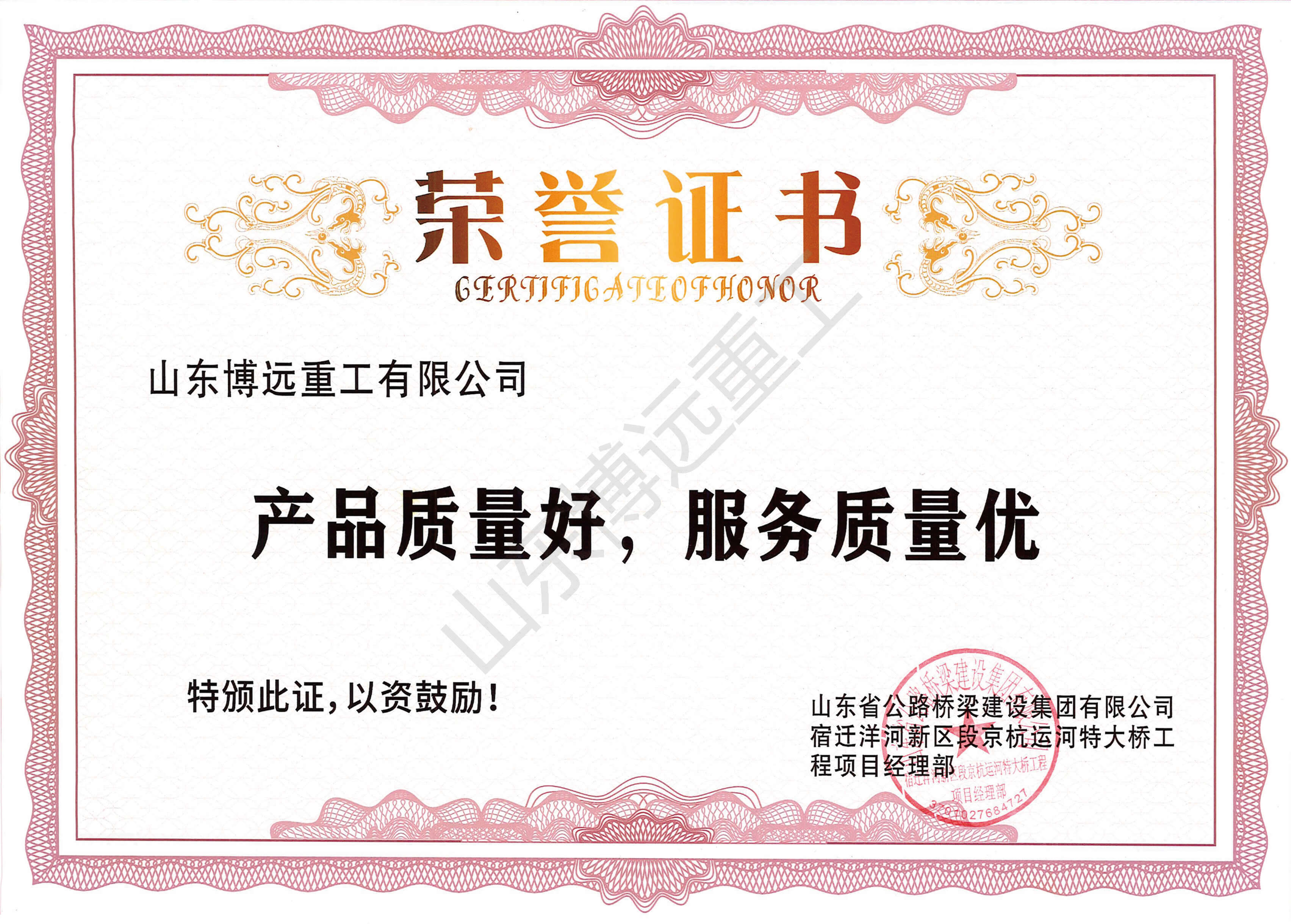 濟(jì)高高速小清河異步掛籃榮譽(yù)證書(shū)